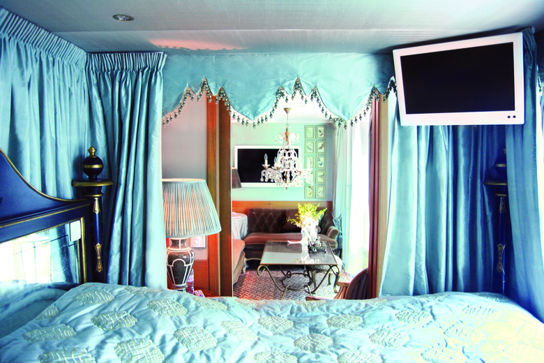 The luxurious décor of the S.S. Antoinette—Uniworld’s first Super Ship—features fine Brazilian marble on the walls and floors, a 19th-century Venetian glass mirror, a stylish Bar du Leopard with full-service bar, and an onboard cinema. The two-story foyer boasts a 10-foot blue Strauss Baccarat chandelier with huge sapphires—a stunning piece that once hung in New York's famous Tavern on the Green—and a collection of original artwork is displayed throughout the ship.
